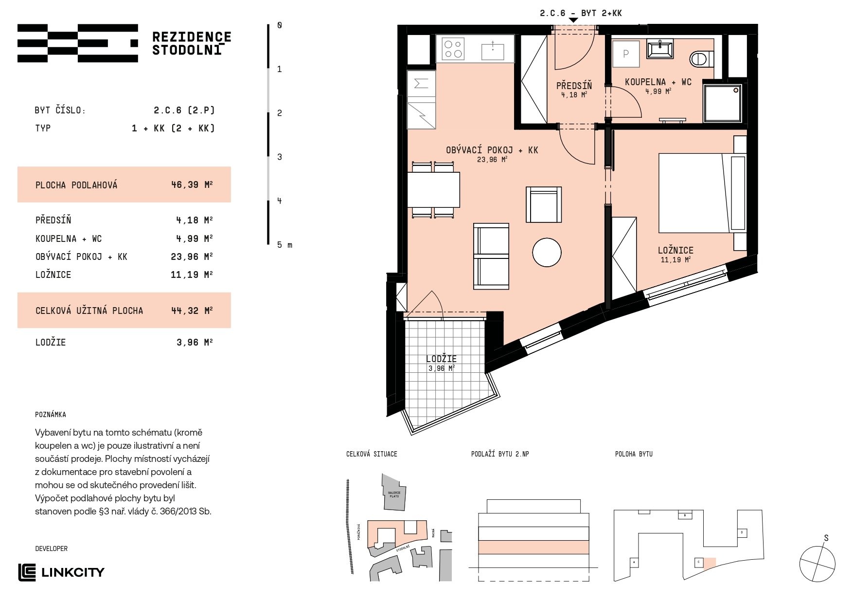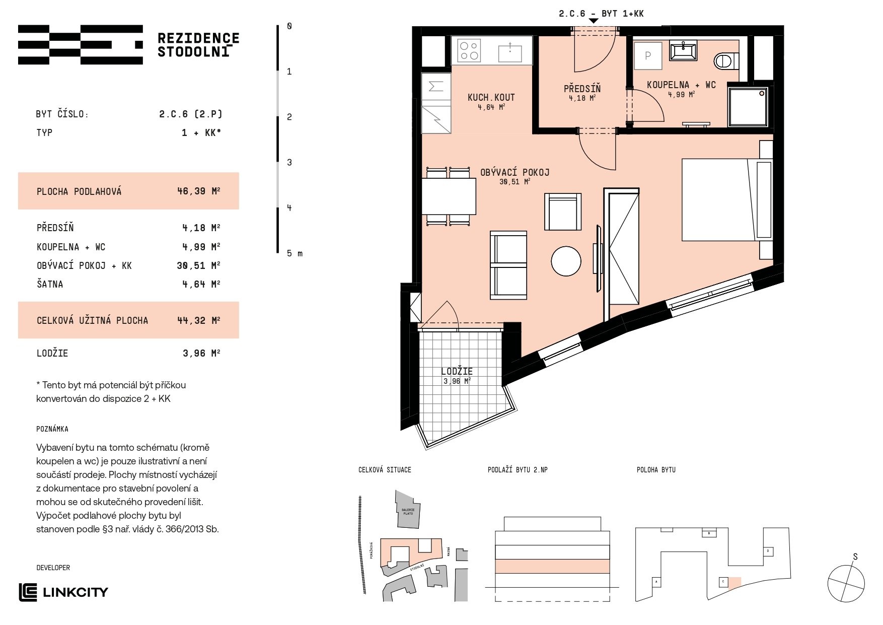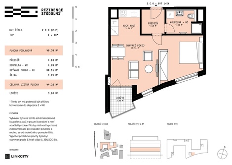 Nabízíme k prodeji byt 1+kk s lodžií v Rezidenci Stodolní. Byt 2.C.6 o velikosti 46,39 m2 se nachází ve 2. nadzemním podlaží a nabízí jižní orientaci. K maximálnímu zážitku z bydlení poslouží i lodžie o výměře 3,96 m2, která bude skvělým doplňkem pro odpočinek u kávy nebo večerního povídání. Dispozice zahrnuje prostorný obývací pokoj s kuchyní, komfortní ložnici, velkorysou koupelnu spojenou s WC a praktickou předsíň s prostorem pro úložné systémy. Byt nabízí flexibilitu díky možnosti chytrého a estetického oddělení jednotlivých zón pomocí stavebně předdefinované příčky, která z oficiální dispozice 1kk byt rozdělí na efektivní a velkorysé 2kk. Rezidence Stodolní představuje nejmodernější bytový projekt v Ostravě z dílny ateliéru Bogle Architects a je součástí prestižní proměny centra města. Nová rezidenční čtvrť s pěší zónou a Galerií PLATO v bezprostřední blízkosti nabízí kombinaci moderního bydlení, klidu a vysokého standardu bezpečí. Nabízený byt je vhodný pro moderní pár, menší rodinu nebo jako investice s výborným potenciálem. Byt je vybaven plovoucími podlahami, přičemž barevné provedení standardu lze přizpůsobit přání klienta. Kombinace kvalitních oken s trojitým zasklením, solární elektrárny a centrálního horkovodního vytápění zajišťuje nízké provozní náklady. Budovy jsou dle energetického štítku zařazeny do kategorie „B - vysoce úsporné“. V podzemních garážích Rezidence Stodolní je k dispozici přibližně 120 parkovacích míst. Nabízena budou samostatná parkovací stání, stání se sklepní kójí i samostatné sklepy. Parkovací místa a sklepy nejsou zahrnuty v ceně bytu. Garáže budou vybaveny přípravou pro dobíjení elektromobilů, což zaručuje pohodlí i do budoucna. Výstavba projektu Rezidence Stodolní je již zahájena, kolaudace je plánována na konec roku 2027. Pro doplňující informace nás můžete kontaktovat telefonicky nebo osobně v kancelářích Organica - Scott-Weber, náměstí Biskupa Bruna 3399/5, 702 00 Moravská Ostrava. Schůzky si prosím rezervujte předem e-mailem nebo telefonicky. Těšíme se na setkání s Vámi.
