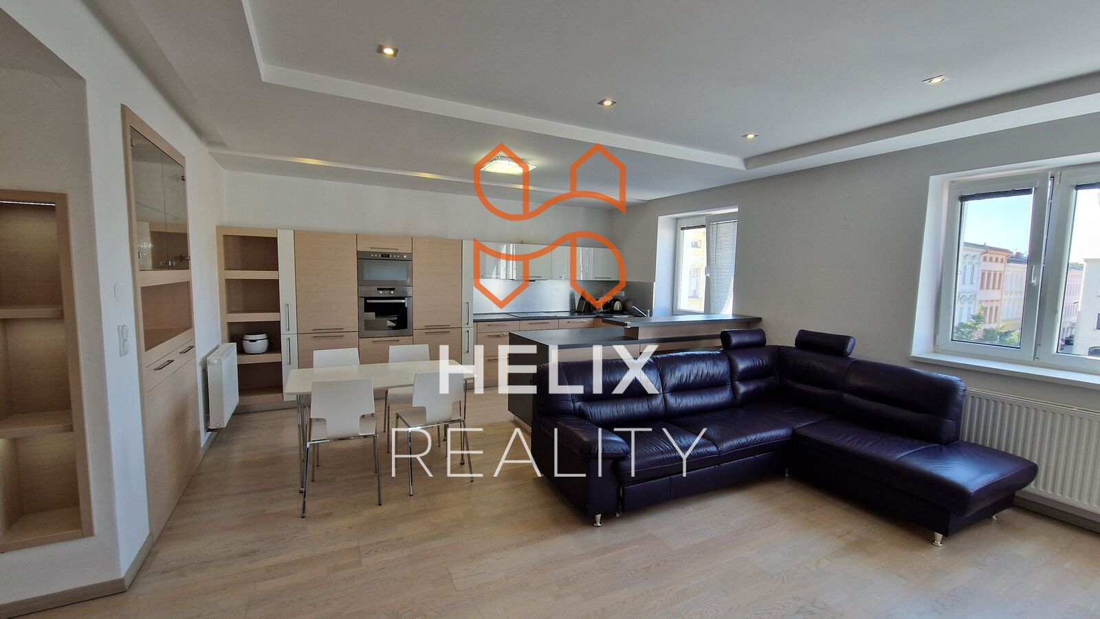 Bydlení v srdci města s krásným výhledem na celé náměstí. HELIX REALITY nabízí k pronájmu nadstandardní, plně vybavený byt 3+kk o výměře 105 m2. Byt se nachází ve 3. NP/3 bez výtahu kompletně zrekonstruovaného cihlového domu na náměstí Svobody v Místku. Vybavení bytu bylo navrženo bytovým architektem, vše je děláno na míru, včetně nadstandardní kuchyně s veškerými elektrospotřebiči. Vybavení bytu odpovídá vyobrazenému na fotografiích. Byt nabízí dvě neprůchozí ložnice - jedna s dvojpostelí, pracovním stolem a vestavnými skříněmi; druhá se dvěma samostatnými postelemi a vestavěnými skříněmi; prostorný obývací pokoj s kuchyňským koutem a jídelním stolem; koupelnu s vanou i se sprchovým koutem a pračkou; šatnu a WC s umyvadlem. Obývací pokoj a ložnice jsou orientovány na SZ s výhledem na celé náměstí. Platby: měsíční nájemné již zahrnuje vybavení a internetové připojení. Dále se k nájmu hradí dle počtu osob fixní platba 5000-6000 Kč/měsíc na spotřebu tepla, vody a elektrické energie. Kauce ve výši dvou měsíčních nájmů, provize RK 21000,- Kč. Nájemce si může vyřídit za roční poplatek parkování v pěší zóně na přilehlých parkovištích. Přednosti této nemovitosti: bydlení v centru města; prostorný, vzdušný byt; nastěhování bez dalších nákladů a starostí; možnost vyřídit si parkování v pěší zóně, kavárna v domě. Ihned k dispozici.