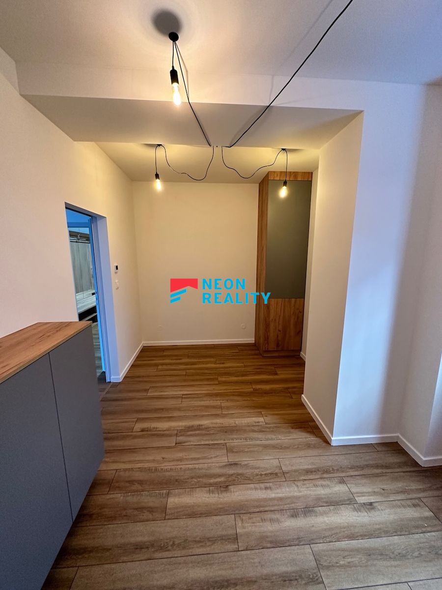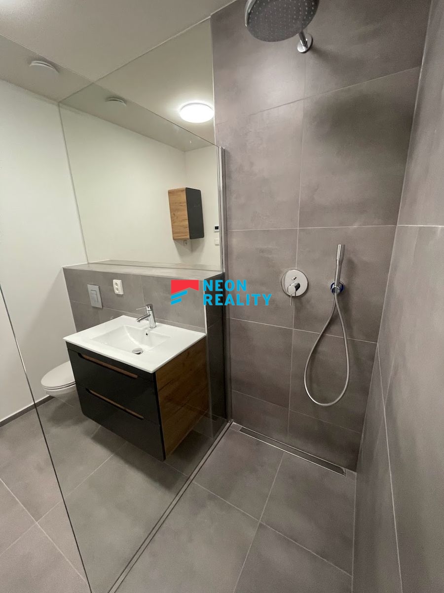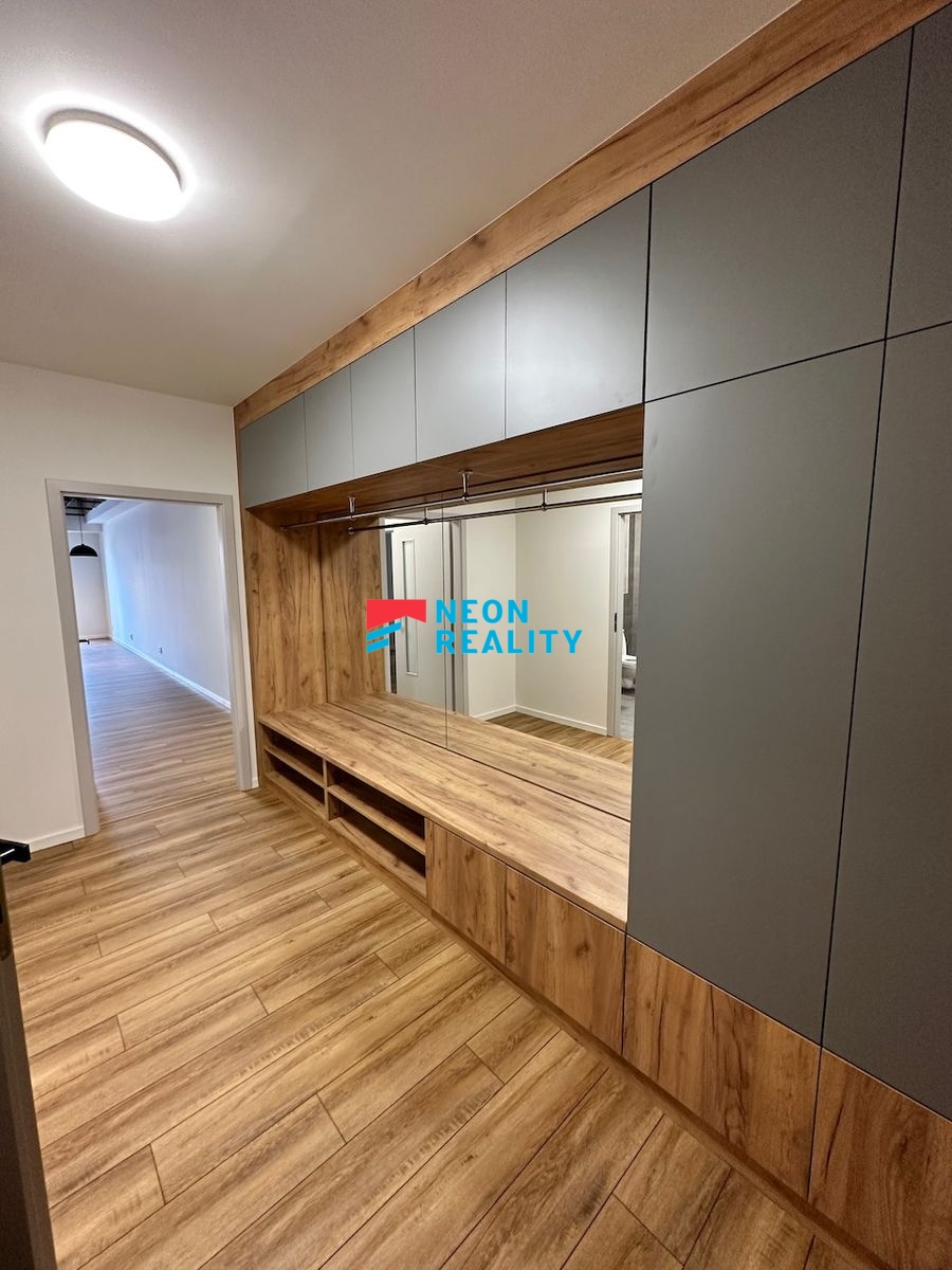 Nabízíme k pronájmu zrekonstruovaný luxusní byt o dispozici 2+KK a celkové výměře 66,5 m2, který se nachází v blízkosti centra Ostravy. Byt je situován ve 2. nadzemním podlaží bytového domu a k dispozici je možnost využití parkovacího stání ve společné garáži. Velkou výhodou jsou elektrické rolety v oknech a klimatizace, které zajišťují vysoký komfort bydlení po celý rok. Interiér bytu je navržen v atraktivním industriálním stylu a nabízí velmi praktické dispoziční řešení. Vstupní část tvoří prostorná chodba s vestavěnými skříněmi a velkým zrcadlem. Koupelna je prostorná, vybavená vanou, umyvadlem, koupelnovým nábytkem a toaletou, přičemž je zde dostatek místa pro pračku i sušičku. Součástí obývacího pokoje je moderně řešená kuchyňská linka s varnou deskou, elektrickou troubou a digestoří, doplněná o bar s židlemi. Jedinečný charakter prostoru podtrhují odhalené betonové překlady na stropě a stylové moderní osvětlení. Díky velkému francouzskému oknu je byt velmi světlý a působí útulným dojmem. Ložnice je vybavena vestavěnými skříněmi a disponuje oknem. Celý interiér bytu je promyšlen do jednotné barevné kombinace, která je patrná na obkladech, nábytku, dveřích i podlahách. V celém bytě je instalováno heat-flow podlahové vytápění, které zajišťuje vysoký tepelný komfort a zároveň nízké provozní náklady. Lokalita je velmi žádaná, s výbornou dostupností městské hromadné dopravy a kompletní občanskou vybaveností v okolí. V těsné blízkosti se nachází centrum Nová Karolina, které nabízí široké možnosti nákupů, služeb i volnočasového vyžití. Měsíční nájemné je 15 390Kč + služby 3200 Kč - 2 osoby . Vratná kauce 2x nájem vč. služeb. Provize RK 1x nájem včetně služeb a DPH.