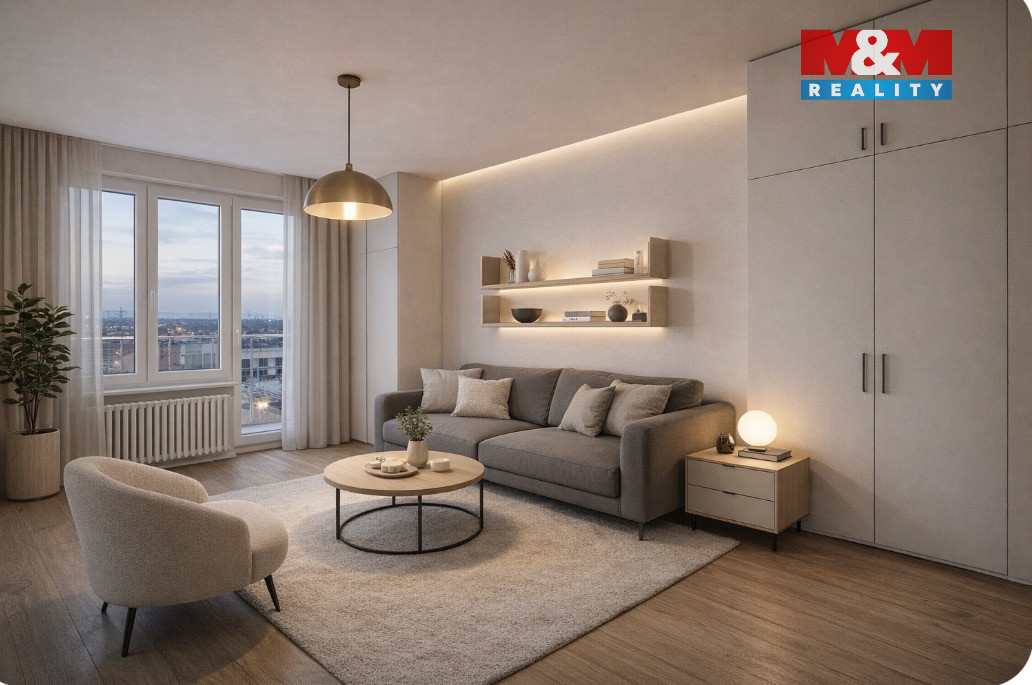 Nabízíme k prodeji byt v osobním vlastnictví s dispozicí 1+kk, nacházející se v revitalizovaném domě v žádané oblasti města Ostravy, část Poruba. Byt je v původním, ale udržovaném stavu. Jeho velkou předností je balkón s mimořádným výhledem na okolí a západy slunce. K bytu náleží i podíl na nebytových částech domu využívaných k pronájmu. Příjmy z pronájmu komerčního prostoru plynou do fondu oprav, který je tímto ponížen a aktuálně činí 321,- Kč, což z bytové jednotky, kromě levného bydlení, může činit také zajímavou investiční příležitost. Ke komfortu bydlení jistě přispěje maximální soukromí 13 NP, kde na patře jsou pouze dva byty a chodba může sloužit jako pomocný odkládací prostor. Původní stav bytu umožňuje novému majiteli realizovat rekonstrukci dle svých představ. Možné varianty úpravy bytu jsou pro inspiraci součástí fotografií ve formě vizualizací možného stavu po rekonstrukci. Energetická náročnost domu je ,,B''. V okolí domu naleznete několik parkovišť, MHD, obchody, banku.