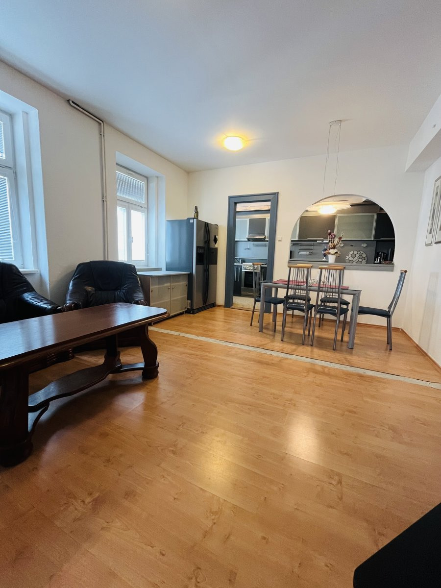 K dlouhodobému pronájmu nabízíme velmi krásný a prosluněný byt o velikosti 3kk o výměře 86 m2, nacházející se ve druhém patře cihlového domu. Stačí mít pouze sbaleno, neboť všechno ostatní vybavení je součástí pronájmu. Pokud hledáte hezký byt k dlouhodobému pronájmu, pak jste na správné adrese. Interiér tvoří prostorná vstupní chodba s vestavěnou šatní skříní, dále se vstupem do dalších místností, které nabízí jeden průchozí pokoj a dva neprůchozí pokoje. Vstup do koupelny, která disponuje vanou a zároveň sprchovým koutem a pračkou. A na oaletu, která je také umístěna samostatně. Z chodby míříme přímo do kuchyně, ve které najdeme elektrickou troubu, plynový sporák, myčku, digestoř a lednici. Byt je zrekonstruovaný, v oknech jsou žaluzie. . Jídelní stůl s židlemi, barové židle, gauče a křesla, televize, zvukový aparát to vše nalezneme v průchozím pokoji, který je propojen s kuchyní. V jednom z neprůchozích pokojů najdeme kompletně vybavenou ložnici, od šatních skříní s manželskou postelí s rošty a matracemi, nočními stolky, osvětlením. Komenského sady na dosah, hlavní vlakové nádražní dostupné tramvají nebo trolejbusem do 10 minut. Protože se byt nachází přímo v centru města, vše je dostupné v docházkové vzdálenosti. Restaurace jako Stračena Pub, Coloseum, Radegastovna, škola, školka, střední škola i vysoká škola. Obchody Billa nebo Albert, masna Těšínské jatka vše, co potřebujete je v dostupné docházkové vzdálenosti. Byt je ihned k nastěhování a domácí mazlíčci můžou po domluvě s majitelem.
